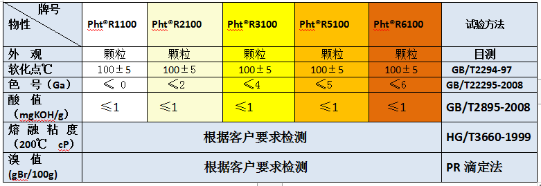 Pht?-R1100、Pht?-2100、Pht?-3100、Pht?-5100、、Pht?-6100精C5系列石油樹脂是適用于熱熔型路標漆的改性石油樹脂。它能增強涂料的韌性、硬度及附著力,并形成平滑的漆面,而且通過添加助劑,使樹脂在四季中始終處在一種穩(wěn)定的狀態(tài),并和松香類樹脂、萜烯類樹脂、碳九石油樹脂混溶性佳。在高檔油漆復配中,可使油漆漆膜形成耐水、耐酸耐堿、耐紫外線、耐化學品的特性,并使外觀光亮度及干燥性都有明顯改善,其中Pht?-R1100、Pht?-R2100經(jīng)過氫化或半氫化的碳五石油樹脂,外觀顏色水白色,200度3個小時熱穩(wěn)定性不變色。是生產(chǎn)更高檔品質(zhì)的熱熔路標涂料的助劑,性能更佳。